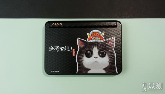 如果是普通版的卡西欧电子辞典,会有三种配色可供选择:水墨黑、樱桃红、琉璃蓝。而限量款的,好像只有水墨黑色,只是会有三个不同的机身图案区分:逢考必过、学霸姿态、吾皇万睡。而我手头这个就是逢考必过了。