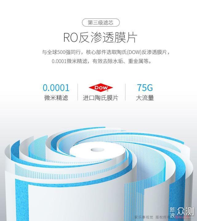 其实RO净水器最重要的就是它的RO滤芯,这款家乐事净水器的RO滤芯使用的是美国原装进口的陶氏RO膜片,那这在效果上就有了绝对的保障! 6、其他功能: