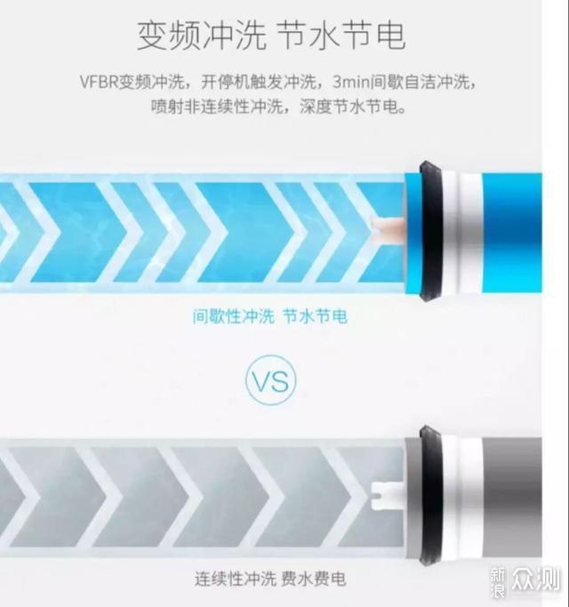 这款净水器还有个变频冲洗的功能,开停机时可以自动触发冲洗,是喷射非连续性的冲洗,可以起到节水的节电的效果。