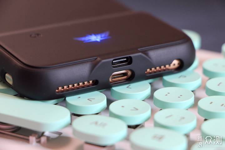 底部开孔分别为扬声器对称开口、手机充电口、Type-C背夹充电口。这个广泛式的设计以及过渡曲线也是上了心思!