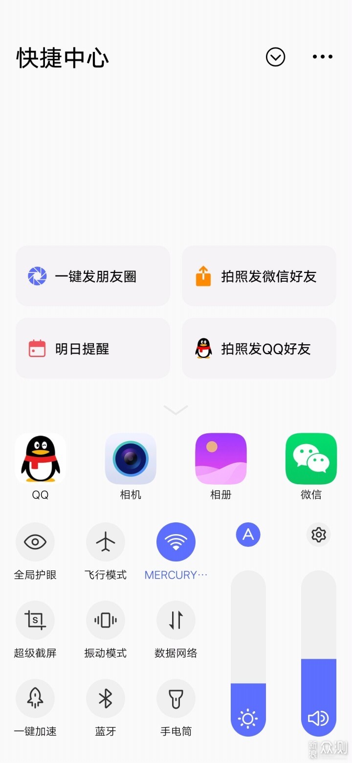快捷中心把多步操作的功能用一个快捷方式实现。例如一键发朋友圈、拍照发微信给好友、明日提醒等,除此外还有很多快捷方式等你发掘。​