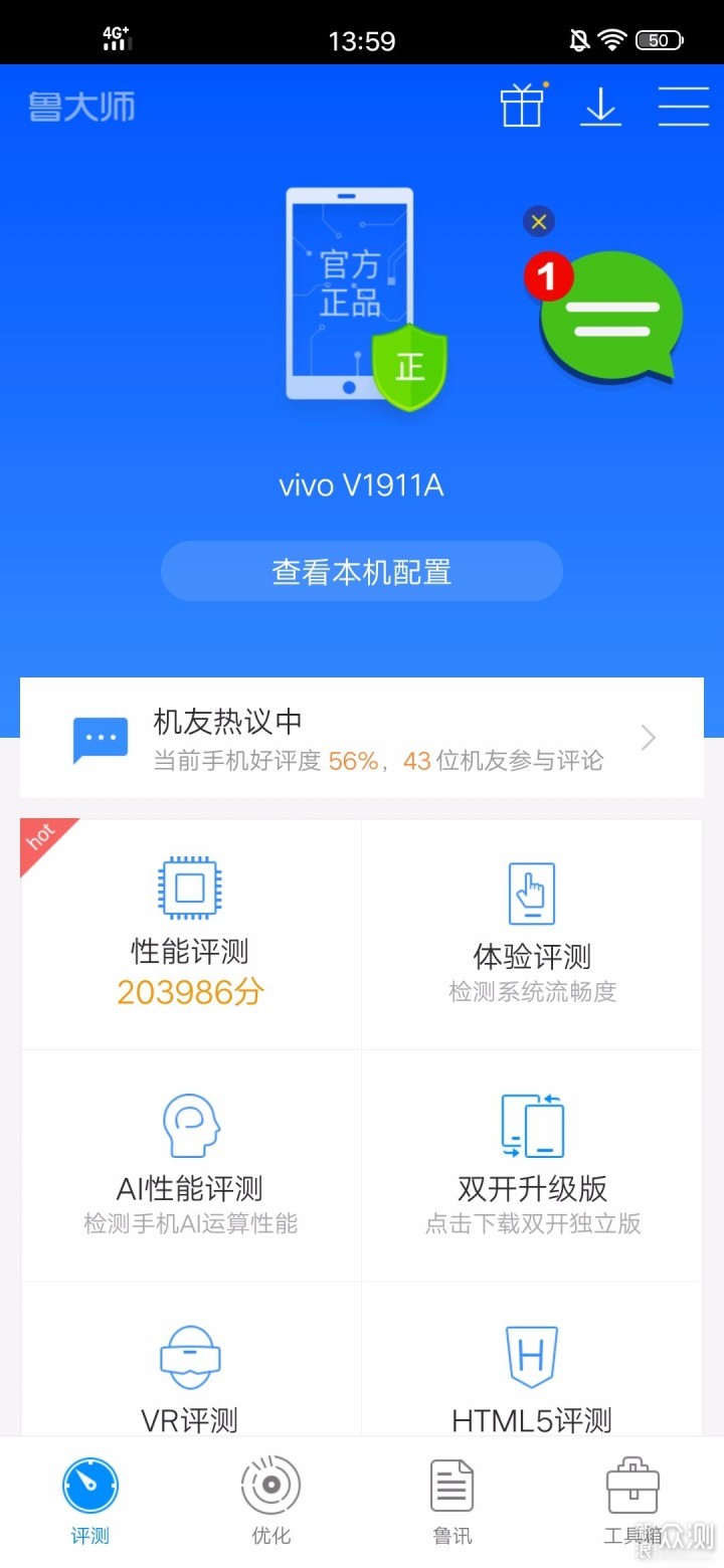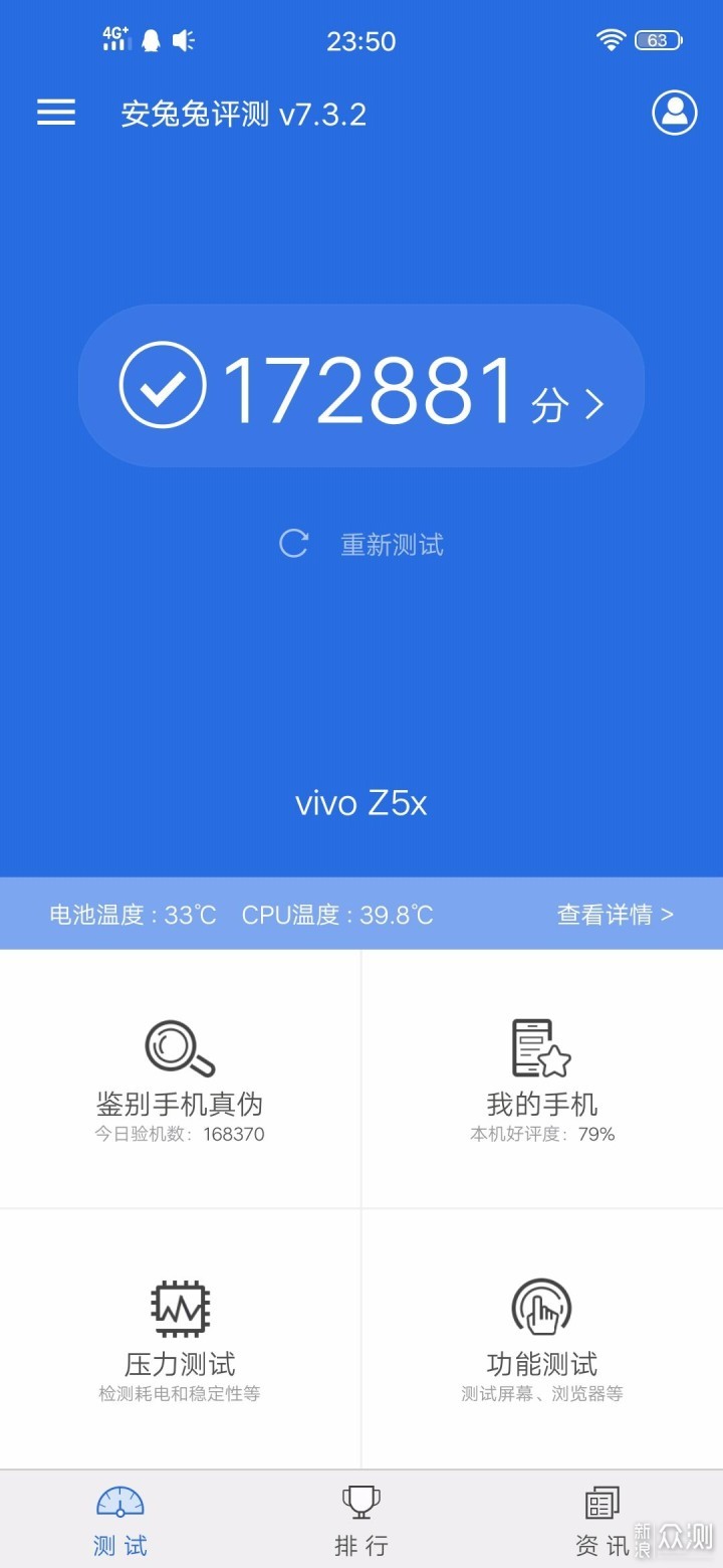 安兔兔跑分172881分,鲁大师跑分203986分,这个成绩在千元阵容中还算可以,跟高端机那肯定是被吊打的。​