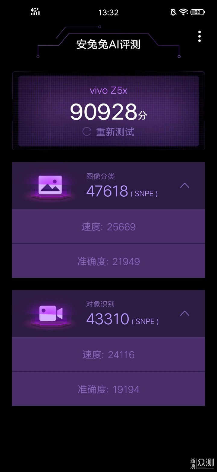 ​vivo Z5x号称AI计算,所以小学弟就用安兔兔AI跑分测试了一下,跑分也尚可​。