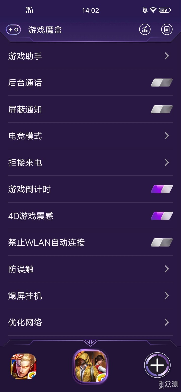 在设置中的游戏磨盒里还可以进一步的设置一些高级选项。在玩FPS类型的游戏时一定要打开4D游戏震感选项,至于为什么请看下方的游戏测试。​