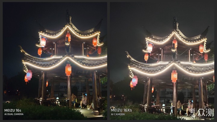 ​夜景高光下,16Xs的表现就不如16S优秀了。可以看到,16Xs的高光部分细节虽然保持的不错,但出现了光影,整个画面被灯光染的过度发白。反观16S,虽然也发生了局部少许过曝的现象,但整体控制的十分不错。 广角镜头​