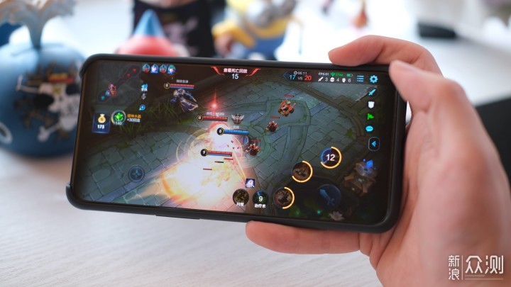在王者荣耀的游戏过程中,无论是匹配模式还是疯狂团战的大乱斗模式,游戏全程在60-62帧浮动,肉眼完全看不到任何掉帧的情况,双扬声器的外放又能让游戏沉浸感大大增强,全景屏没有刘海,游戏没有死角,再看看隔壁)手动滑稽。