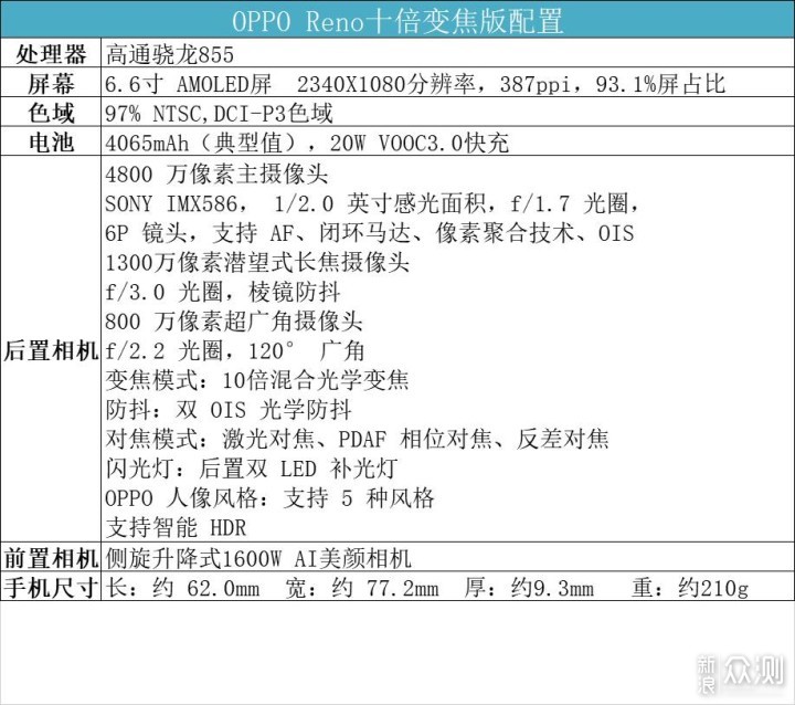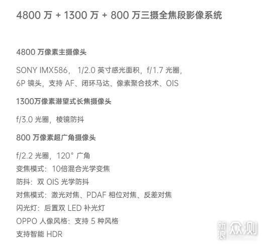 拍照体验OPPO Reno十倍变焦版的镜头配置如图: