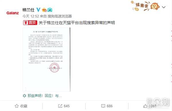 7、 格兰仕公开声明天猫不作为 让20万备货化为泡影 最近似乎流行企业官微公开“怼人”,6月17日,格兰仕电器官微发布《关于格兰仕在天猫平台出现搜索异常的声明》,表示其自拜访拼多多以来,格兰仕在天猫平台的搜索端陆续出现异常,造成了难以估计的实质性影响。格兰仕在声明中将搜索异常归因于天猫不作为,表示其在天猫平台备货超过20万台,但如今均化为泡影,并呼吁对方不能“店大欺客”。声明原文如下:关于格兰仕在天猫平台出现搜索异常的声明自2019年5月28日格兰仕拜访拼多多以来,格兰仕在天猫平台的搜索端陆续出现异常,导致正常销售遭遇严重影响。发现异常后,我方通过各种方式与天猫沟通,但异常问题至今尚未得到解决。到目前为止,我方认为至少是天猫业务层面上的不作为,希望引起天猫高层的足够重视。我方认为,天猫作为知名企业,具有足够技术能力维护平台的正常运作,应当履行“让天下没有难做的生意”的理念,并持续为消费者提供公平、开放、自由的消费选择。鉴于电商的销售特点,此次不仅于618促销期给包括格兰仕在内的众多持份者带来重大损失,而且可能对双方后续业务开展产生难以估计的实质性影响。对此,我方深表不满。自天猫成立以来,双方的合作不断深化。为了备战618促销,我方及合作伙伴在天猫平台备货超过20万台,并积极配合促销活动,但这些努力如今均化为泡影。在此,我方谨向所有因此遭受不便的消费者致歉,并建议选购格兰仕产品的广大消费者暂时前往正常销售的平台购买。我方将继续竭力与天猫沟通,直至异常问题得到解决。我方同时严正呼吁:店大不能欺客,社会各界应当维护公平营商环境,消费者才是我们共同的衣食父母。
