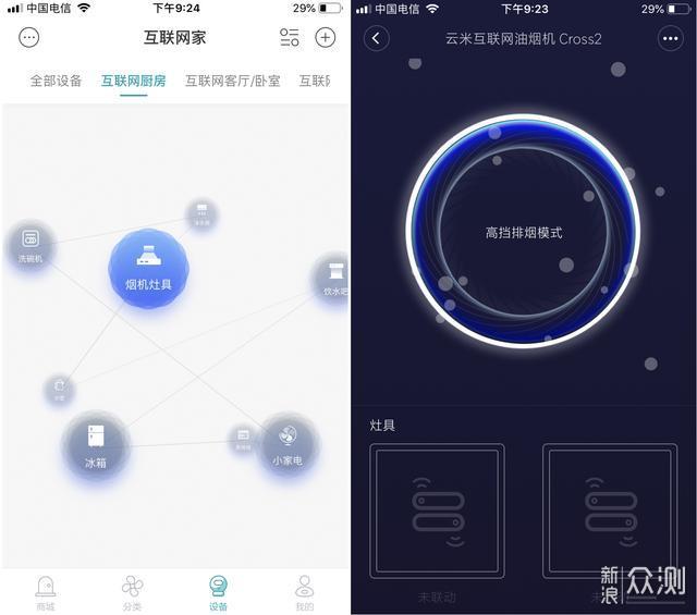 作为云米的互联网厨房设备,它们也具备了手机App管控。手机下载云米商城,将云米吸油烟机Cross2增加的“我的设备”里,就可以撑上控制了。
