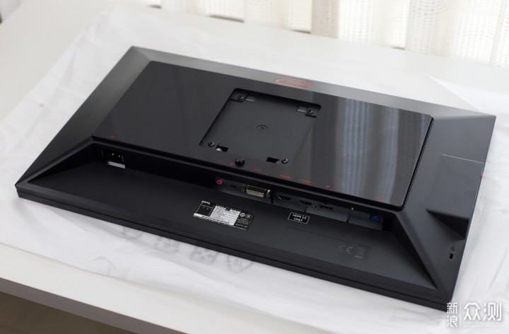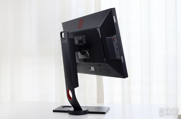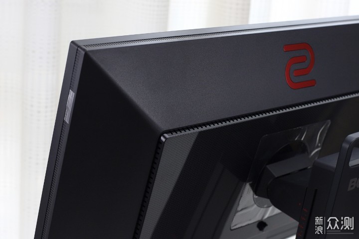 ​不论是正面、侧面还是背面,ZOWIE GEAR XL2540的线条都比较硬朗,背部有一个辨识度很高的ZOWIE红色LOGO,搭配红色的收线孔让显示器整体不会过于呆板。​