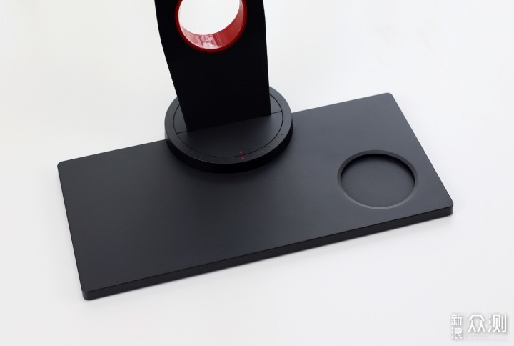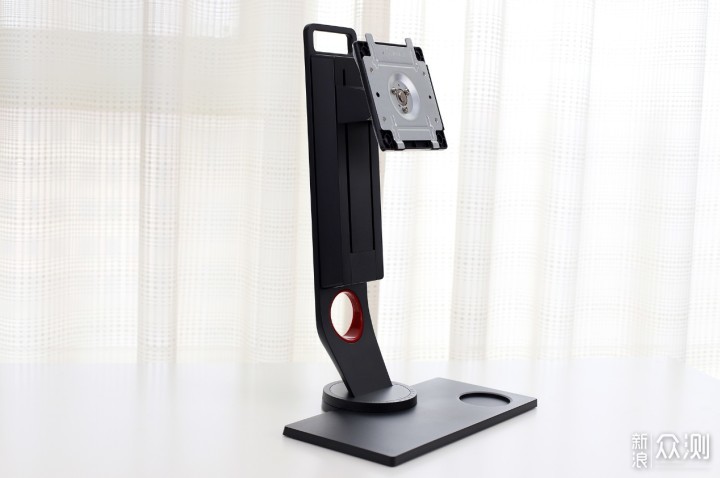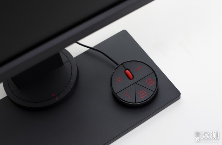 ​现在许多电竞显示器在支架的设计上下了不少功夫,三角形、弧形、镂空球形等等,暂且不说稳固性如何,其实这种奇形怪状的支架比较占用桌面空间,并且几乎谈不上实用。ZOWIE GEAR XL2540的底座是传统的长方体,表面有一个圆形的凹槽用来放置S-Switch控制器;在支架底部有一个红色内壁的收线孔,用于整理后背的线缆。​