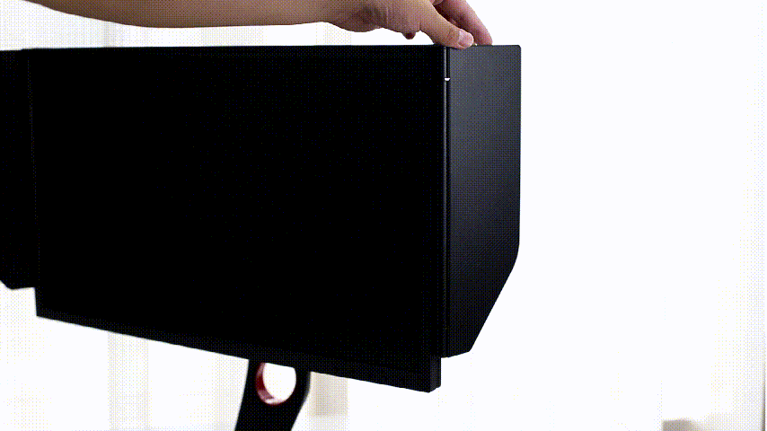 ​遮光挡板可以避免游戏过程中受到周围不必要的光线干扰,如果需要可以通过显示器两侧的螺丝孔直接安装,遮光板可调控角度大约为180°。