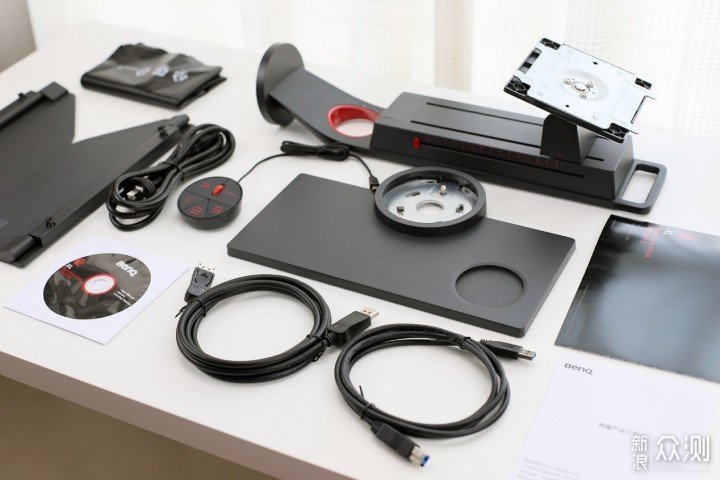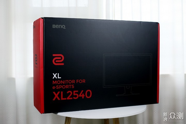外观与细节:做更纯粹的电竞显示器(1)开箱与配件 先从简单的开箱开始吧,简约的黑红撞色设计的包装箱已经成为XL系列的标配。​