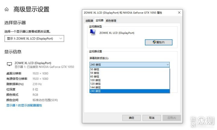 ​值得注意的是,只有DP接口和HDMI 2.0接口支持240Hz刷新率,并且需要在显示器设置中手动调至240Hz。​