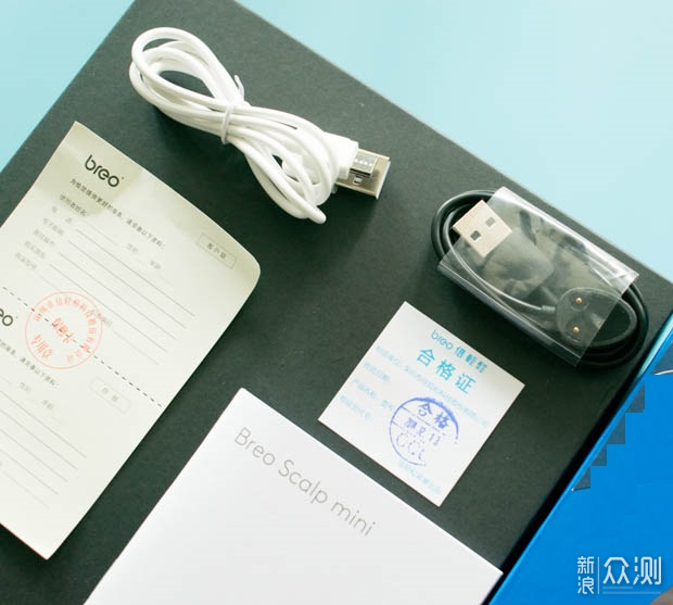 有这些东西是因为这个是王祖蓝代言的,这款按摩器是公益型号,消费者每购买一台,厂商会向中国儿童少年基金会《爱心书籍》项目捐赠36元基金。这个基金会还是正宗的基金会。 除了上面这些赠品,下面是附件,有说明书、保修卡、合格证、白色的充电线,黑色的充电线。白色和黑色有什么区别呢?后面会提到。