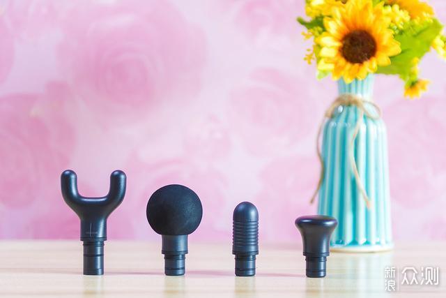 随机配备了四款专业按摩头,材质都是空心的硬质塑料,仔细闻的话是有塑料的味道,材质方面有待提升,从左到右依次能够提供颈部与脊椎两侧的按摩头,手臂、腰背、臀部、大腿、小腿等常规按摩头,冲击深层组织关节手掌等位置,最后一个可以适用于肌肉部位的放松塑性。
