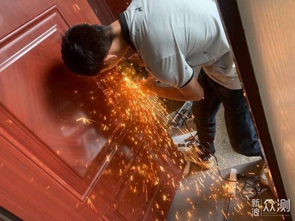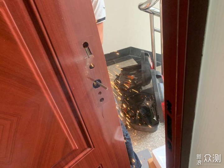 安装锁芯的时候还是需要破坏一下门面的,这个没办法,不能将就。此时已经快中午12点了,我边吃饭边看小哥哥安装,心里挺不好意思的,也不知道他吃过没,中途一直给他递烟。