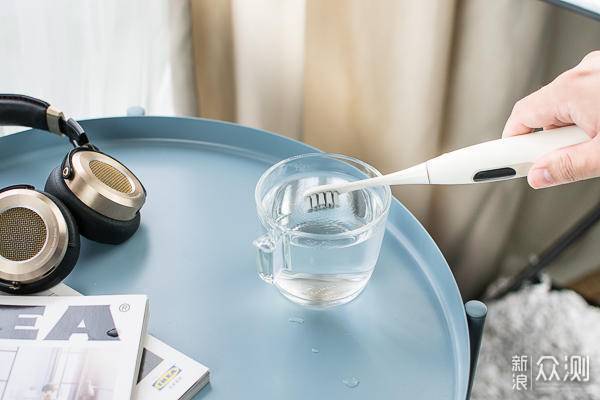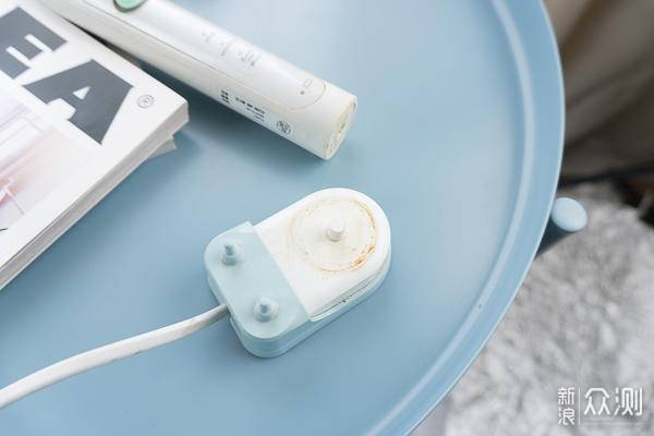 ▼牙刷头部分采用类似飞利浦9系的刷头设计,触感温和,不扎手。