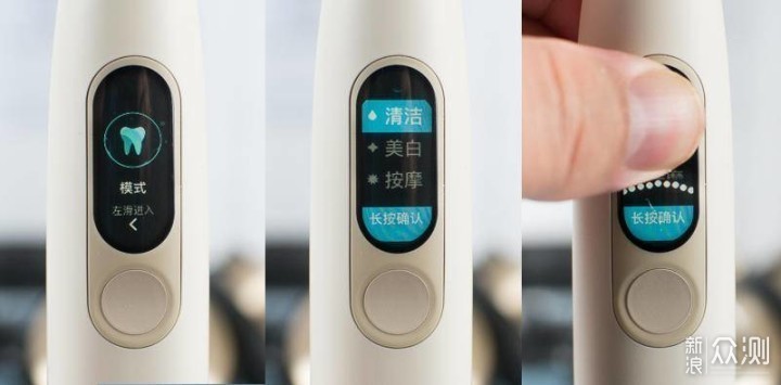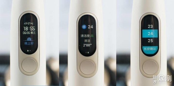 ▼与大多数电动牙刷满身按键不同,Oclean X全身只有一块屏幕和一个按键。