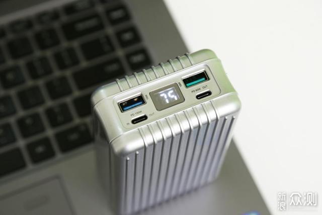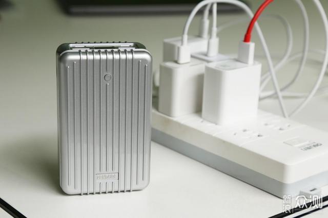 SuperTank的造型像是复古的铝合金行李箱,尤其是这种竖向的条纹,具有装饰性的同时拿起来也不会滑手。正面靠上的按键式用来查看电量信息的,除此之外机身没有其他按键,比较简洁,符合我这种数码直男的审美风格。