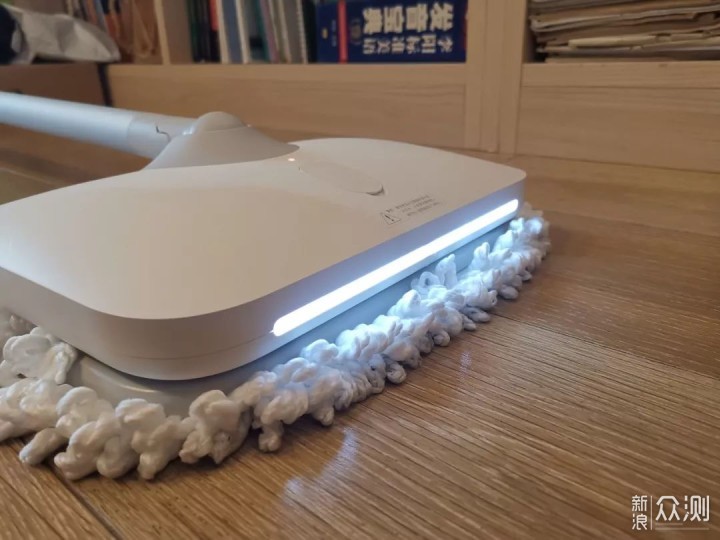 在拖把前边有一长条灯光,可以让我们在擦地时更清楚的看清地面,这个是握把非90度自动开启的,不需要额外设置。