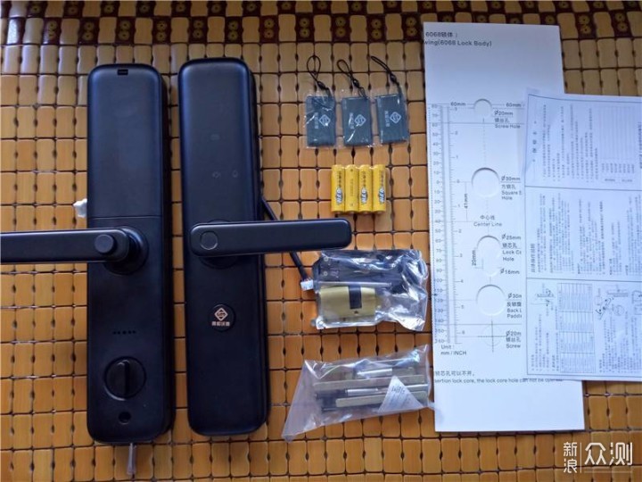 青松沃德L12配件包括了3个门禁卡,4个电池,一个锁芯,多个配件,安装说明书等。