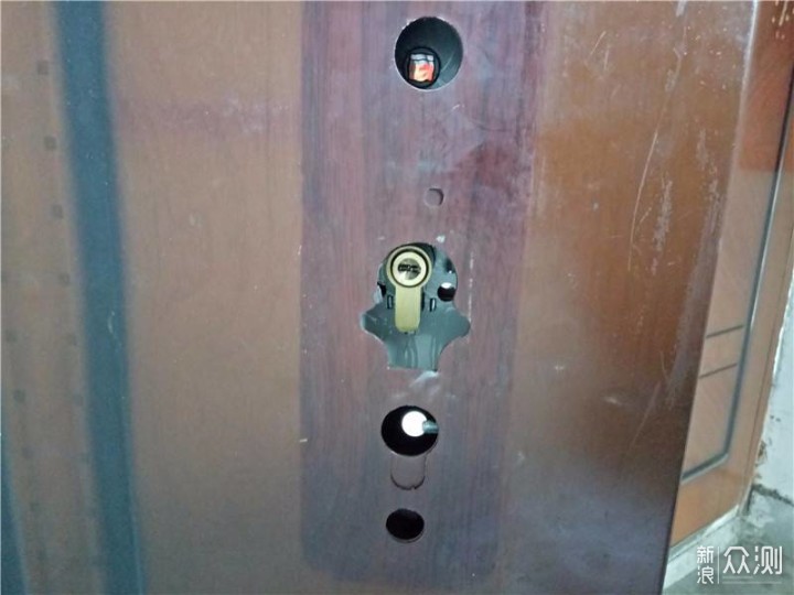 父母家的锁是国标的锁体,个人觉得安装起来还是较为简单,选择自行安装青松沃德L12指纹密码锁。安装的第一步是将原来的锁进行拆除,拆除后的状态就是这样光秃秃的。