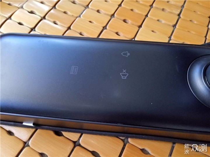 青松沃德L12的数字密码区域与刷卡区域是在一起的,通过外观没办法看到数字密码区域,只有装上电池,并唤醒数字密码才可以看到。在刷卡区域下方还有门铃和静音的触摸按钮。