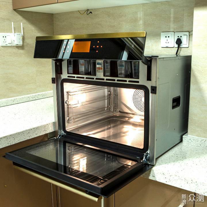 当年厨房装修时,橱柜里设计了烤箱,那时还没“蒸烤箱”这个产品的概念。那时有蒸汽炉,价格昂贵,烤箱是烤箱,蒸汽炉是蒸汽炉,是两种不同的厨房电器。现将两者合二为一,能蒸又能烤,一机两用,真的方便多了。 这台蒸烤箱内腔58L,水箱面板具自动升降功能,有纯水箱和废水箱,至于如何蒸,如何烤,店铺有详细的介绍,这里不再一一列举。 我操作的感受,这台蒸烤箱不看说明书也能操作,因为控制面板设计的非常简单明了又人性化。 本想把我家原来的烤箱拆下来换上这台蒸烤箱,发现这台蒸烤箱与烤箱的高度不同,换上的话会出现14厘米的空隙,就无法嵌入这台蒸烤箱了。只能放台面使用了。