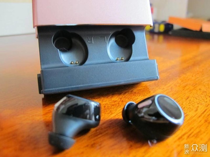 拉开电池舱的”抽屉“,Nineka N2无线蓝牙耳机静静的安放在黑色哑光的基座里面,蓄势待发。