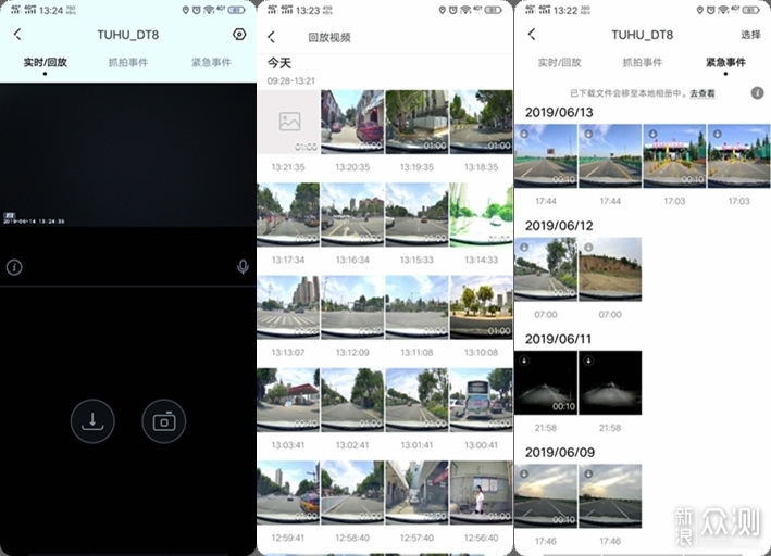 刚才介绍过事件照片和视频可以设置为连接后自动存储到本地,那么其它视频就需要自己进行手动操作,倒是很简单很方便,唯一不太满意的是视频传输速率太慢,希望可以改进提升。盯盯拍App还有其它一些有趣的功能,比如可以将所拍的照片和视频分享到盯盯拍“在路上”社区,也可以在这里观看其他用户上传的照片和视频并进行互动,当然也支持分享到微信、微博等平台,这对于爱晒旅游一路拍的群体来说无疑是比较人性化的功能。 总结从外观来看:优点为小巧细致,不存在影响视线的风险,而且装取方便俯仰角度轻松可调。缺点为主机的拍摄角度通过支架只能进行俯仰调节,不可以左右调节。 从记录效果来看:优点为画面细腻还原度高,即使没有路灯的夜间所拍摄的画面,效果也毫不马虎,同时音频录制杂音小,辨识度高。缺点为不支持前后双镜头录制,如果支持双镜头录制那么途虎王牌DT8高清夜视行车记录仪的品质将会迈上新的高度。 总体来说,DT8高清夜视行车记录仪稳定性高,硬件过硬,功能扎实,可以很好的完成行车记录的使命,是一部值得信赖的行车记录仪,如果能够支持前后双镜头监控则更加优秀。