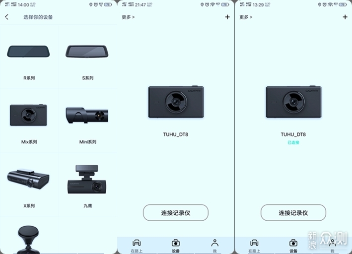 盯盯拍的App各大应用网站都可以下载,当然也可以通过扫描主机屏幕App下载界面的二维码进行下载。安装好App之后首先打开蓝牙,在手机的WiFi界面找到WiFi-TUHU-DT8进行连接,默认密码为1234567890,为了安全还是通过App及时进行更改(如果忘记密码可以长按主机下方的RESET孔5秒还原到初始设置)。WiFi连接之后打开App的设备界面,文章开头介绍过DT8对应的是Mix系列,点击选择然后连接记录仪,你会发现也许无法连接,这一定是因为没有打开手机的GPS定位,这点很关键,而且必须授权盯盯拍App可以获取位置信息才可以正常连接。