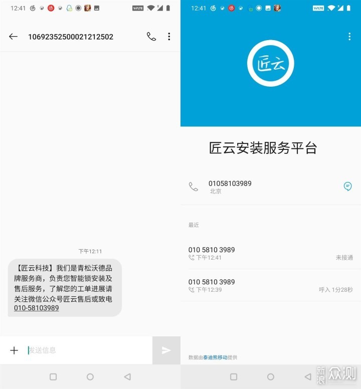 四是售后,主要包含两个部分,一是官方电话主动预约,二是免费上门安装。在青松沃德L12智能指纹锁签收后,官方一般会在24小时内(以实际情况为准)先下发短信通知再进行电话联系,登记安装信息,随后就是本地的安装人员再电话联系你进行安装预约,从自己的情况来看,可以提前一天。