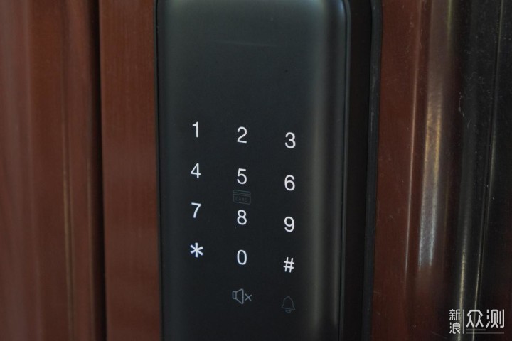 青松沃德L12智能指纹锁采用了常见的大数字键盘设计,没有屏幕设计,毕竟支持App联网控制功能。面板可以清晰看到的标识有三个,一个是刷卡位置,一个是防打扰模式,一个就是门铃,这个门铃标识也是触摸式按键,集成电子门铃的功能也节省了一笔单独安装门铃的费用,可以通过手机App进行音量调节。