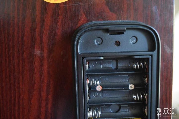 青松沃德L12智能指纹锁供电的部分采用了两组四节五号电池的设计,所谓的两组就是直接安装四节电池也能用,另外一组四节干电池属于备用,用来提升续航性能。注意用来恢复出厂设置的按钮就在电池上方中央的位置,安装完智能锁后一定要进行一次出厂设置,否则可能存在磁卡、手机NFC等可以正常写入但是无法开门的问题。