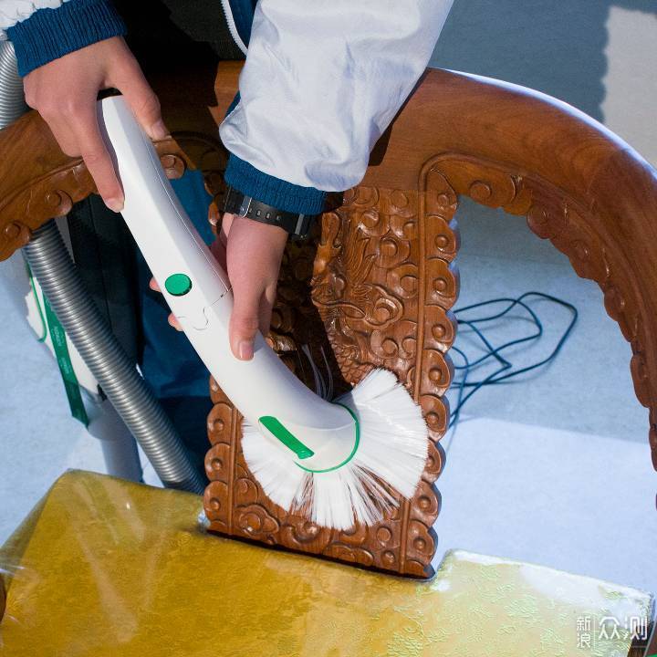 毛刷吸头,可以伸缩,可以吸各种凹凸不平的家具表面,边刷,边吸,灰尘悉数吸走。