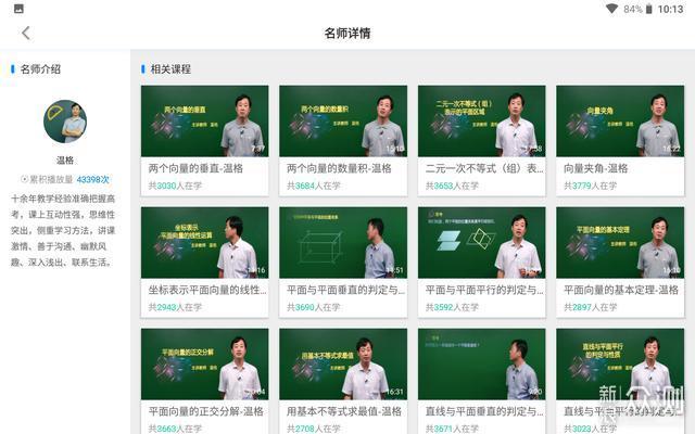 除了点评和全面剖析这款文章的结构、语法等,还会给出至少两个范文,孩子可以结合自身的问题阅读范文,就可以彻底掌握这类文章的写法。 八、名师微课堂名师微课堂中包含了大量的教学资源,涉及到初高中学习中的所有科目,首先根据年级选择对应的课程资源和名师资源,从名师资源中可以选择不同的教学方式来进行个性化学习。每门课程都有多个名师进行视频指导教学,同时教师信息上有项次的个人简介和累积播放量,方便孩子进行选择。