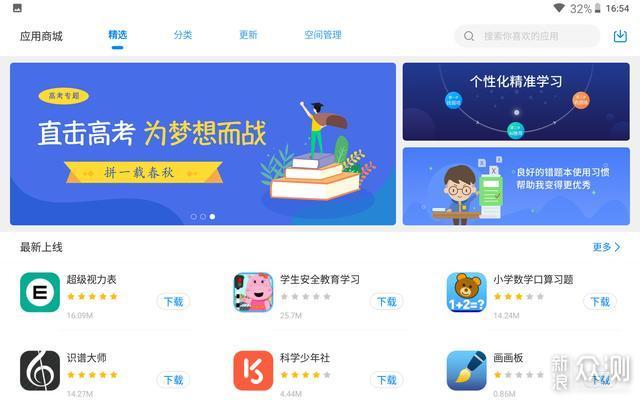 应用商城中的分类非常详细,从学科到考试、从娱乐生活到便捷生活,种类丰富,软件实用性较强。当然它也有QQ、微信、象棋和围棋等基础社交娱乐软件可以让孩子使用,父母如果不放心可以在手机端对应用进行管理,确保孩子拥有良好的学习环境。
