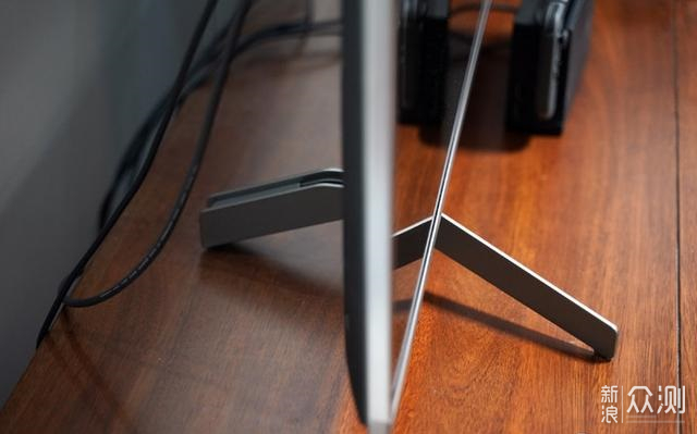 电视机采用了金属的脚架,电视并没有追求极致的轻薄,可以看到整机还是挺厚的。