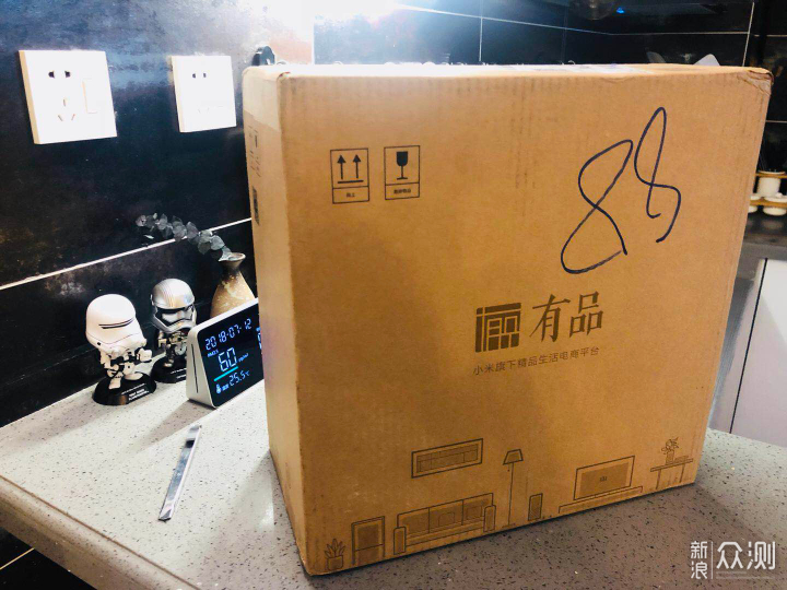 标准的小米包装风格,没什么可说的,拎起来还是有点分量的。 箱子里东西都在这了,简单明了,主机×1+接水槽×1+说明书×1。