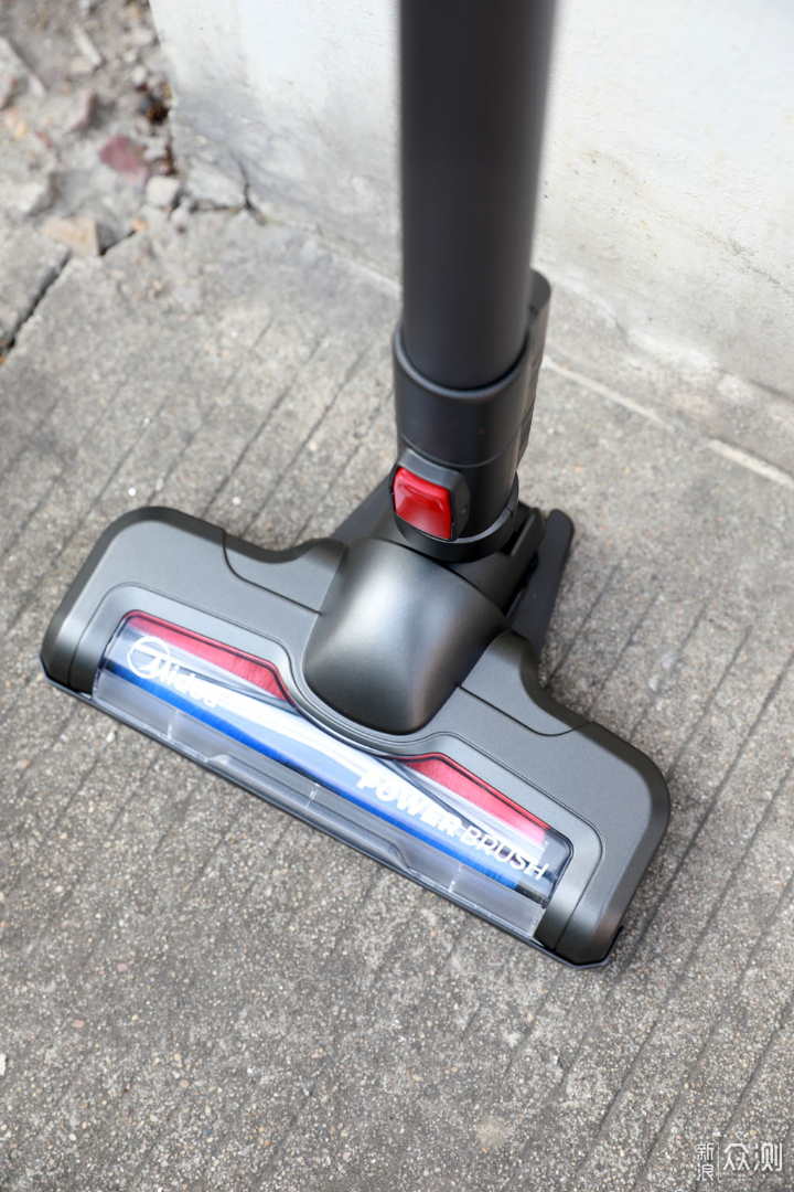 吸尘头的正面设计了LED灯,可以照亮暗处灰尘等,让它们无处遁形,不过能另外安装个开关会更好,这样可以省点电。