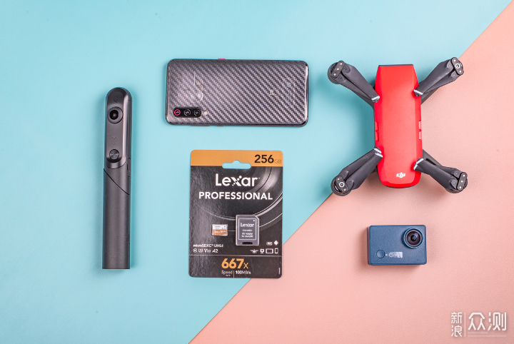 先来晒晒这些年攒的装备,无人机的话,大家可以忽略了,跟老板借的。老板人好,而且广佛大部分地方都禁飞,我们一般出游的时候提前说一声都可以借到的。 从左右到分别是QooCam 360度全景相机、小米9、雷克沙667X 256GB TF卡、海鸟4K运动相机。算上外借的智云Smooth4手机稳定器,我的Vlog设备虽然花费不多,但是实用性还是可以的。