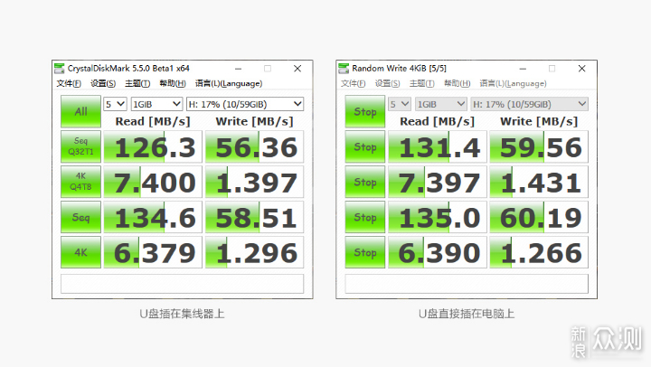 在数据读写速度测试中,使用CrystalDiskMark搭配ORICO优盘进行读写测试。将ORICO优盘直接插在电脑后方主板的USB 3.0接口上的测试数据如图一,将硬盘通过集线器转接至USB 3.0接口上的测试数据如图二,稍有差距但并不明显,由此可见ORICO卡扣式集线器的读写速度还是非常有保障的。考虑到实际的使用环境,购买ORICO卡扣式集线器还会附赠一条0.5米长的USB 3.0延长线,可以和随机附赠的双**USB 3.0数据线搭配使用,最大延长距离为1米左右。