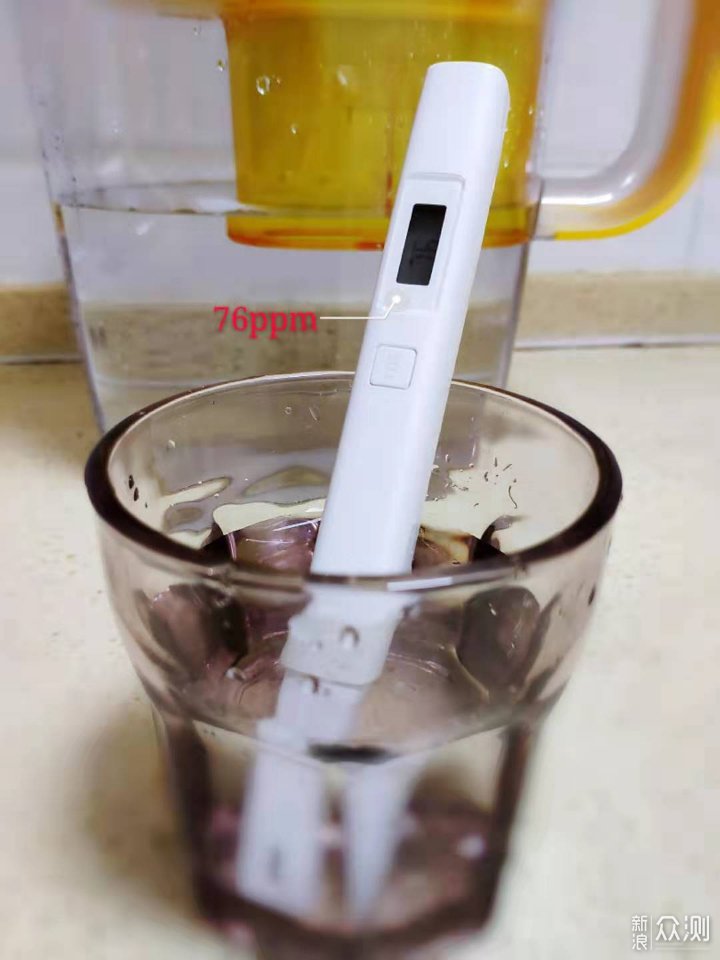 净化好的水,通过出水口倒入容器中,出水口的盖子也会在水的压力下打开,可以防止水进行飞溅。 【水质测试】为了测试莱卡净水壶LA35EN-O对水质的净化效果,采用了第三方的小米水质检测表来进行检测,测试数据可能存在误差,测试结果仅供参考。先来科普一下水的TDS值的相关知识。 TDS是指水中总溶解性物质的浓度,单位毫克/升(mg/L),主要反映的是水中Ca2+、MG2+ 、Na+、K+等离子的浓度,与水的硬度、导电率有较好的对应关系,TDS值越小,水中Ca2+、MG2+、Na+、K+等离子的浓度越低,电导率越小。 TDS值一般用于衡量纯净水的纯净度。但TDS值小,并不代表水质好,TDS值高也不代表水质差。TDS值的大小根本无法反应水中有害重金属离子浓度的大小,水中有细菌多少、有机物浓度高低、亚硝酸浓度是否超标、有没有农药残留这些都都无法通过TDS值的大小来反应。即使是水中的细菌超标,重金属离子浓度超标了,只要水中溶解的Ca2+ MG2+ Na+ K+等离子浓度减小了,TDS值也会变小。 不同水质的TDS值(PPM):纯净水(0~9)、山泉水、矿化水(10~60)、净化水(60~100)、自来水(100~300)、污染水(300以上)。PPM(Part Per Million)是个1/100万计量单位,即:每升水中所含有溶解物的毫克数。【以上科普知识来源于百度百科】