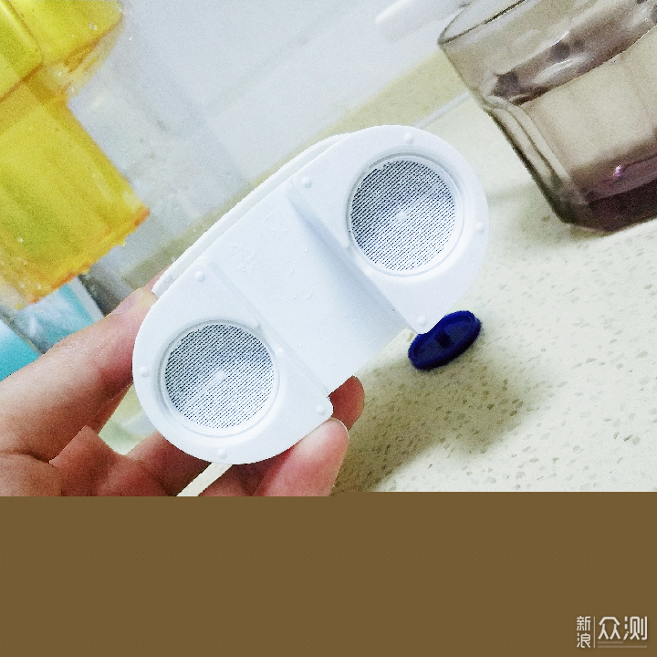把水加入壶身后,水就会经过滤芯进行净化,通过净化后的水流或者水滴的速度来看,净化的效率还是很快的,没有出现水质净化断流的现象。