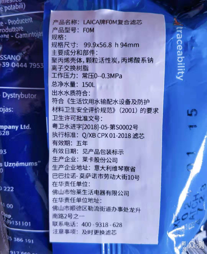 莱卡净水壶LA35EN-O的滤芯采用了塑料的包装,在包装上对滤芯的相关信息进行了介绍。