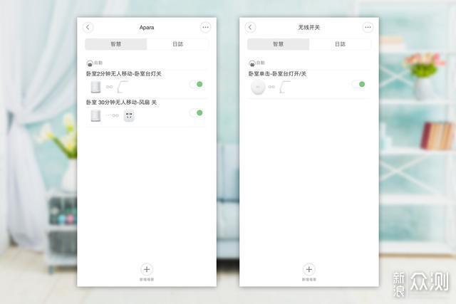 当然如果你像我一样使用了整个米家智能家居平台,你也可以和米家其他设备设置联动,达到更智能化的智能家居体验,比如像我的使用搭配Apara绿米的人体传感器,设置房间内30分钟无人移动,自动关闭台灯。因为我一般晚上睡之前会看几页书,有时候看着可能会睡着忘记关灯,这样的设置避免了早上起来灯一直开着,省电环保。还有使用场景是,Yeelight台灯的触控开关需要很准确的摸到开关位置才能关闭,不如物理开关好用,有时候晚上怕影响到其他人又不能用小爱同学关闭,所以我设置了一个无线开关放在贴在床头,通过物理按键点按控制关灯和开灯。▼▼