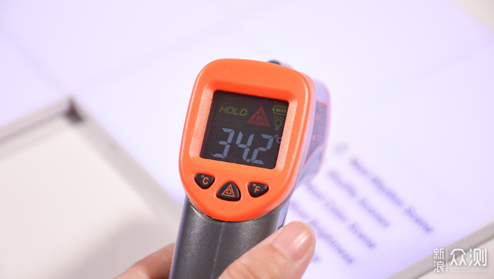 任何电子产品工作都会产生一定的热量,灯光照明产品自然也不例外了。经过实际测试,在工作一小时以后八块普通灯板基本没有发热现象,而控制板内部集成了较多的零部件,因此温度较高,实测正面中心温度为34.2摄氏度。