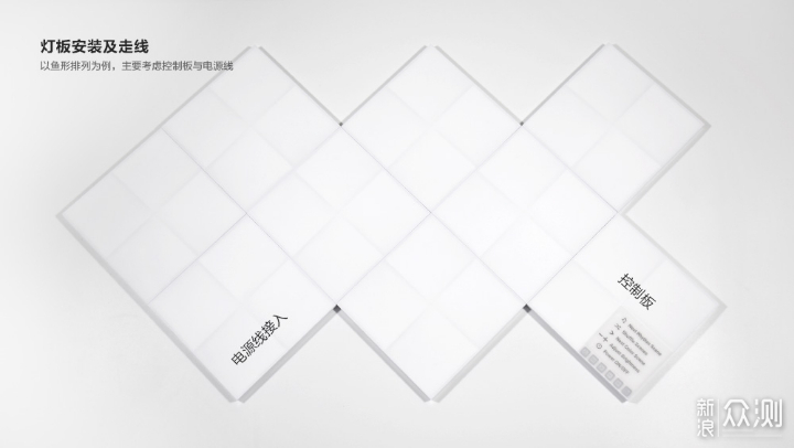 测试无误以后在墙面测量好安装的位置,并且用铅笔做好标记便于安装。这里也给大家分享一个小技巧,可以使用透明胶带在灯板背后先粘好,然后再将双面胶贴到灯板背后,如此一来九块灯板就可以同时安装到墙面上,比较容易确定安装的位置,拼接好的图案也不会出现变化。实际安装发现一个人并不太好操作,推荐大家找个朋友一起帮忙。 体验丨应用