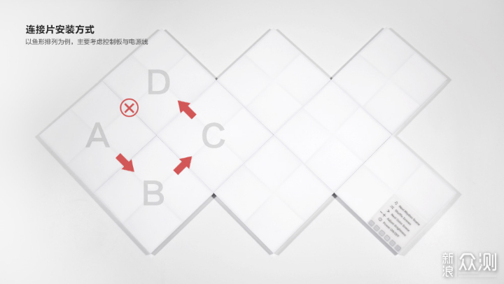 在刚开始组装的时候我一度走入一个误区,认为所有的灯片必须全部连接起来,还是以我的鱼形为例,最前方的四块灯板按照A-B-C-D的方式连接即可,但我当时认为A和D还需要连接,就造成连接片不够以及灯片开孔对不上的情况。将自己的失败经验分享给大家,权当是一次学习了。